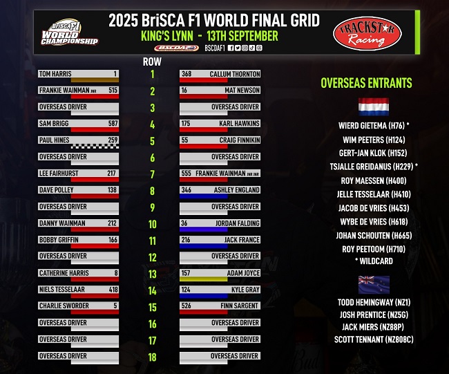The grid for the £5000 prize fund Dash for Cash finale—Paul Butler’s last big idea, will also be add here in due course.